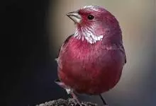 藏朱雀:全长约17-18厘米。雄鸟头部深红色具光辉,喉部暗红色具白色点斑;背部灰白色,各羽具玫瑰红色羽端,形成许多斑纹;腰部淡玫瑰红色;翅暗褐色,沾灰白,羽端沾玫瑰红或灰白色;尾暗棕色,端缘玫瑰红色…全部>>