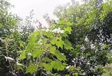 木芙蓉,锦葵科木槿属落叶灌木或小乔木。小枝上有细绒毛;叶片为卵状心形,托叶为披针形,常早落;花单生,花萼为钟形,花冠初为白色或淡红色,后逐渐变为深红色;果实为扁球形,有淡黄色的毛附着。花期8到10月。…全部>>