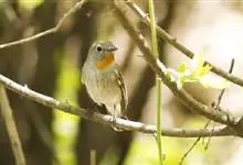 橙胸姬鹟:体长12-16厘米,是一种体型略小的林栖型鹟。尾黑而基部白,上体橄榄褐色,额具一白色横带,两端向上延伸至眼上形成眉斑。翼橄榄色,下体灰。成年雄鸟额上有狭窄白色并具小的深红色项纹,常不明显。…全部>>