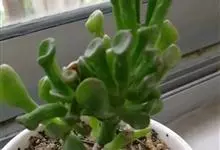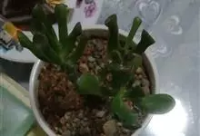 筒叶花月,是景天科青锁龙属的多年生草本植物。植株多分株,灌木状,茎较粗壮,圆柱形,表皮灰褐色;叶片肉质,互生,呈圆筒状,簇生于茎或分枝顶端,叶端呈斜截形,截面为椭圆形;花呈星状,淡白色;花期秋季。…全部>>