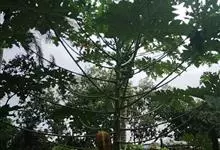 番木瓜,番木瓜科番木瓜属的常绿软木质小乔木,高达10米,具有乳汁;茎不分枝或有时于损伤处分枝;叶大且聚生于茎顶,近似盾形,叶柄中空;花单性或两性,有些品种雄株偶尔生两性花或雌花,…全部>>