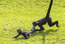 蛛猴属:共有7种。头体长约35-66厘米。头又圆又小,四肢细长,手没有拇指。毛茸茸的尾巴约有60-92厘米长,很会抓住树枝,其功能有点像手。尾巴比身体还长,缠绕性极强。能直立行走。…全部>>
