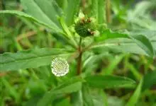 鳢肠 L.)是菊科,鳢肠属一年生草本植物。茎直立,高可达60厘米,叶片长圆状披针形或披针形,无柄或有极短的柄,两面被密硬糙毛。头状花序,有细花序梗;总苞球状钟形,总苞片绿色,草质,长圆形或长圆状披针形,…全部>>