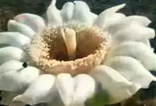 仙人球花 仙人掌科,仙人球属。植株单生或成丛。幼株球形,老株长成圆筒状,高可达75厘米,直径12-15厘米。球体暗绿色,具棱11-12。刺锥状,黑色,长1-1.5厘米。花着生于球体侧方,大型嗽喇叭状…全部>>
