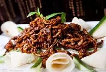 鱼香肉丝,是四川的一道特色名菜,该菜品以泡辣椒、泡姜、大蒜、黄葱、生姜和醋炒制猪里脊肉丝而成,由民国时期的一位川菜大厨所创制,相传灵感来自泡椒肉丝。鱼香肉丝是一道著名川菜,其辣咸鲜酸兼备,葱姜蒜香浓郁,…全部>>