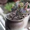 仙女之舞是景天科、伽蓝菜属植物。常绿肉质灌木,株高可达2-3米。幼株茎上有毛。叶有柄;单叶对生,阔卵状三角形,肉质;新叶开展,老叶正面凹、背面圆凸,缘具稀锯齿,橄榄绿色至灰绿色,被稠密的灰白色毛。…全部>>