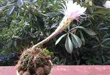 仙人球花 仙人掌科,仙人球属。植株单生或成丛。幼株球形,老株长成圆筒状,高可达75厘米,直径12-15厘米。球体暗绿色,具棱11-12。刺锥状,黑色,长1-1.5厘米。花着生于球体侧方,大型嗽喇叭状…全部>>
