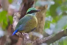 绿胸八色鸫:是雀形目八色鸫科的鸟类,共有12个亚种。体长为16-18厘米,体重65-69克。体型圆胖,尾短,腿长。头黑,上体绿色,两翼深色而具白色斑纹,头顶至后枕深褐,胸及腹部苹果绿,臀亮红。…全部>>