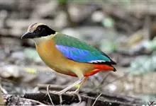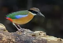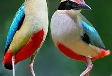 蓝翅八色鸫是雀形目八色鸫科的鸟类。体长17-20厘米,体重类约48-70克,体型圆胖,尾短,腿长,以身体具有红、绿、蓝、白、黑、黄、褐、栗等鲜艳夺目,丰富艳丽的色彩而得名,是很有观赏价值的鸟类。主要…全部>>