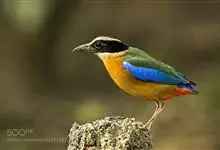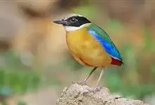 蓝翅八色鸫是雀形目八色鸫科的鸟类。体长17-20厘米,体重类约48-70克,体型圆胖,尾短,腿长,以身体具有红、绿、蓝、白、黑、黄、褐、栗等鲜艳夺目,丰富艳丽的色彩而得名,是很有观赏价值的鸟类。主要…全部>>