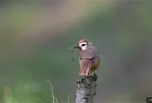 白颊噪鹛是雀形目噪鹛科噪鹛属鸟类,又称土画眉、小画眉、小噪鹃。成鸟额至头顶栗褐色,长眉纹、眼先和颊纹棕白色,眼后至耳羽深褐色,…全部>>
