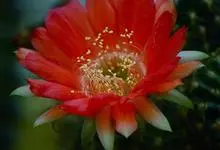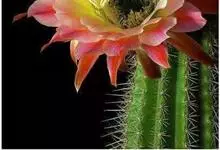 仙人球花 仙人掌科,仙人球属。植株单生或成丛。幼株球形,老株长成圆筒状,高可达75厘米,直径12-15厘米。球体暗绿色,具棱11-12。刺锥状,黑色,长1-1.5厘米。花着生于球体侧方,大型嗽喇叭状…全部>>