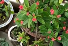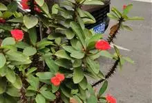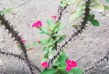 虎刺梅:别称铁海棠,是蔓生灌木植物。茎多分枝,长60-100厘米,直径5-10毫米,具纵棱,密生硬而尖的锥状刺,刺长1-1.5厘米,直径0.5-1.0 毫米,常呈3-5列排列于棱脊上,呈旋转。叶互生…全部>>