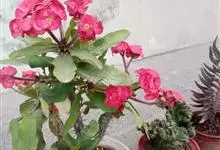 铁海棠为大戟科大戟属蔓生灌木植物;茎多分枝,具纵棱,呈旋转状;叶互生,通常集中于嫩枝上;每个花序基部边缘具微小的红色尖头;苞叶先端圆且具小尖头,无柄,上面鲜红色,下面淡红色;苞片丝状;子房光滑无毛,…全部>>