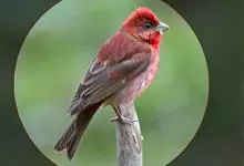 酒红朱雀小型鸟类,体长13~15厘米。雄鸟通体深红色,头部深朱红或棕红色,下背和腰玫瑰红色,眉纹粉红色而具丝绢光泽。两翅和尾黑褐或灰褐色、具暗红色狭缘,内侧两枚三级飞羽具淡粉红色先端。…全部>>