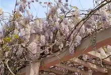 多花紫藤 DC.)是豆科紫藤属落叶木质大藤本,叶互生,奇数羽状复叶,对生,长椭圆形或披针形,基部圆,先端尖;总状花序,顶生或腋出,花冠蝶形,花紫色或蓝紫色,栽培种有粉红、白色及重瓣等;花期春季。…全部>>