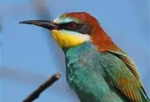 蓝颊蜂虎:是蜂虎科、蜂虎属的鸟类,共有2个亚种。体长27-33厘米,翼展46-49厘米,体重38-50克。嘴形细长而下弯,先端尖,…全部>>