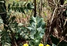 十大功劳 Fedde),小檗科十大功劳属常绿灌木植物。叶子较大且较多,呈椭圆形,绿色,表面光滑无毛,叶柄较长;花朵较小,呈多边形,黄色,花瓣对称分布,表面有绒毛;果实呈圆形,褐色,…全部>>