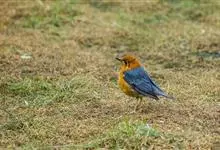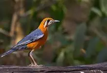 橙头地鸫是鸫科、地鸫属中型鸟类,体长18-22厘米。整个头、颈和下体橙栗色,其余上体包括两翅和尾蓝灰色或橄榄灰色,翅上多具白色翅斑。虹膜褐色或棕褐色,嘴黑褐色或黑色,脚橙黄色或肉黄色。特征极明显。…全部>>