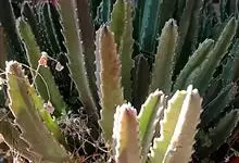 豹皮花 L.C.Leach)是马利筋亚科豹皮花属植物。肉质植物,茎亮绿色,几株簇生在一起,高约10厘米,状似仙人掌,四棱,棱稍钝,棱具粗厚软刺,光滑,绿色。无叶。…全部>>