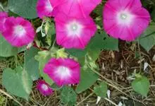 圆叶牵牛 Roth)是旋花科,番薯属一年生缠绕草本植物,叶片圆心形或宽卵状心形,基部圆,心形,顶端锐尖、骤尖或渐尖,两面疏或密被刚伏毛;花腋生,着生于花序梗顶端成伞形聚伞花序,花序梗比叶柄短或近等长,…全部>>