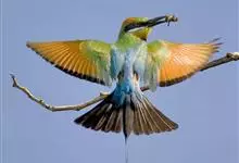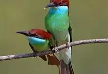 蓝颊蜂虎:是蜂虎科、蜂虎属的鸟类,共有2个亚种。体长27-33厘米,翼展46-49厘米,体重38-50克。嘴形细长而下弯,先端尖,…全部>>