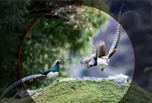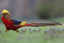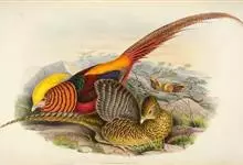 雉鸡:鸟纲、雉科、雉属的一种走禽,共有30个亚种。体形较家鸡略小,但尾巴却长得多。雄鸟和雌鸟羽色不同,雄鸟羽色华丽,多具金属反光,头顶两侧各具有一束能耸立起而羽端呈方形的耳羽簇,…全部>>