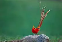 锦鸡是鸡形目雉科锦鸡属鸟类动物。锦鸡是白腹锦鸡、红腹锦鸡的统称,雄鸟的头顶、背、胸为金属翠绿色,羽冠紫红色,后颈披肩羽白色,具黑色羽缘,下背棕色,腰朱红色;飞羽暗褐色,尾羽长,有黑白相间的云状斑纹,…全部>>