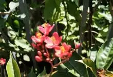 变叶珊瑚花,是大戟科麻风树属常绿灌木。变叶珊瑚花单叶互生,倒阔披针形,叶面为浓绿色,叶背为紫绿色,叶柄具茸毛,叶面平滑,常丛生于枝条顶端;花单性,雌雄同株,花冠红色或粉红色,雌、雄花不同时开放;具乳汁,…全部>>