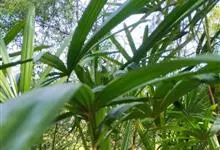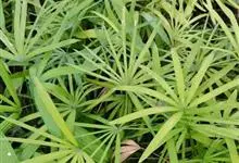 矮棕竹:丛生灌木,高1米或更高些,茎圆柱形,有节,上部被紧密的网状纤维的叶鞘,纤维毛发状,淡褐色。叶掌状深裂,裂片7-20片,线形,具1-2条肋脉,叶柄约与叶片等长,较细,两面凸起,边缘平滑。花雌雄…全部>>