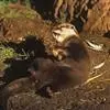 鼬獾,是食肉目鼬科鼬獾属哺乳动物。鼬獾体躯粗短,鼻端尖,耳小,呈圆形;四肢短,前爪比后爪长两倍;头、嘴和四肢外侧呈鼠灰色,下颔、腹和四肢内侧呈浅黄或灰白色,尾尖及尾腹面为白色;全身绒毛呈白色或浅灰色,…全部>>