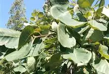 粉背黄栌叶卵圆形,较大,长3.5-10厘米,宽2.5-7.5厘米,无毛,但叶背显著被白粉;叶柄较长,1.5-3.3厘米,…全部>>