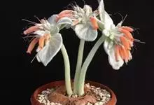 月宴 H.E.Moore) [1-2] 又名断崖女王,是隶属于苦苣苔科大岩桐属 石生植物、多肉植物。具地下块茎,叶面被有稠密、质感似天鹅绒的大量白色绒毛;生于枝顶端,数朵群聚开放,花筒较细,长3至…全部>>