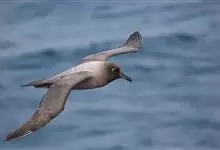 黑脚信天翁为鹱形目信天翁科下的一种大型海鸟, 单型种,无亚种分化。体长79-83厘米。嘴黑色,嘴基和眼下方灰白色,其余全身黑褐色。个别尾上覆羽和尾下覆羽白色,脚黑色,能与短尾信天翁区别。 全部>>