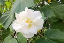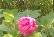 木芙蓉,锦葵科木槿属落叶灌木或小乔木。小枝上有细绒毛;叶片为卵状心形,托叶为披针形,常早落;花单生,花萼为钟形,花冠初为白色或淡红色,后逐渐变为深红色;果实为扁球形,有淡黄色的毛附着。花期8到10月。…全部>>