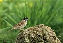 黄眉鹀是雀形目鹀科鹀属鸟类,体型中等偏小。雄鸟头部主要为黑色,冠纹白色,眉纹前段黄色而后段白色,喉白而具黑色细碎纵纹;上体主要为栗褐色,背具黑褐色纵纹;翼主要为黑褐色,…全部>>