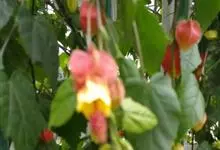 红萼苘麻是锦葵科、苘麻属常绿软木质灌木,叶绿色,长5-10厘米,心形,叶端尖,叶缘有钝锯齿,有时分裂,有细细的叶柄;叶互生,掌状叶脉;花单生于叶腋,具长梗,下垂;花萼红色,半套着大约4厘米长的花瓣,…全部>>