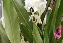 姜花又名野姜花。是姜科姜花属的多年生草本植物,茎高1-2米;叶片长圆状披针形或披针形,叶面光滑,叶背被短柔毛;穗状花序顶生,椭圆形,花芬芳,白色;蒴果卵状三棱形,微黄绿色;种子鲜红色,具橘红色的假种皮。…全部>>