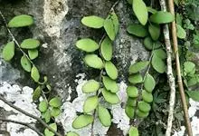 伏石蕨是水龙骨科、伏石蕨属小型附生蕨类植物。根状茎细长横走,淡绿色,疏生鳞片粗筛孔,两侧不规则分叉。叶远生,二型;叶片近球圆形或卵圆形,基部圆形或阔楔形,全缘;能育叶狭缩成舌状或狭披针形,叶脉网状,…全部>>