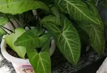 合果芋是天南星科,合果芋属多年生常绿草本植物,合果芋的茎节具气生根,攀附他物生长。叶片呈两型性,箭形或戟形;叶基裂片两侧常着生小型耳状叶片。佛焰苞浅绿或黄色。合果芋一般不易开花。…全部>>