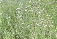 马鞭草是马鞭草科、马鞭草属多年生草本植物。马鞭草的茎呈直立暗绿色,呈四棱形,有稀疏粗毛;绿色叶片呈长卵形,基部为樱形,边缘有粗锯齿;细长的穗状花序生枝顶或腋生,花小而稀疏,花期在7月;果呈长圆形,…全部>>