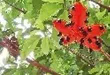 假苹婆是锦葵科苹婆属乔木植物。幼枝被毛;叶椭圆形或披针形,先端骤尖,基部钝或近圆无毛;圆锥花序腋生,花淡红色;蓇葖果鲜红色,长卵圆形或长椭圆形;种子卵圆形黑褐色;花期4-6月。…全部>>