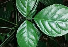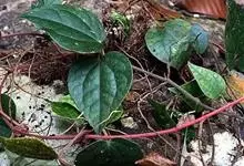 假蒟是胡椒科胡椒属多年生草本植物。小枝近直立,无毛或幼时被极细的粉状短柔毛;叶近膜质,有细腺点,下部的阔卵形或近圆形;花单性,雌雄异株,聚集成与叶对生的穗状花序;总花梗与花序等长或略短,…全部>>