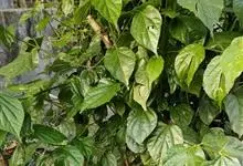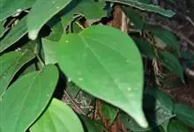 假蒟是胡椒科胡椒属多年生草本植物。小枝近直立,无毛或幼时被极细的粉状短柔毛;叶近膜质,有细腺点,下部的阔卵形或近圆形;花单性,雌雄异株,聚集成与叶对生的穗状花序;总花梗与花序等长或略短,…全部>>