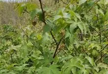 掌叶覆盆子是蔷薇科悬钩子属植物,藤状灌木,高1.5-3米;枝细,具皮刺,无毛。单叶,近圆形,直径4-9厘米,两面仅沿叶脉有柔毛或几无毛,基部心形。单花腋生,…全部>>