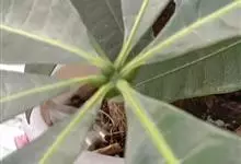 瓜栗 Walp. ),俗称发财树,木棉科小乔木,高4-5米,树冠较松散,幼枝栗褐色,无毛。小叶具短柄或近无柄。花单生枝顶叶腋;花梗粗壮,被黄色星状茸毛,脱落;萼杯状,近革质;花瓣淡黄绿色,狭披针形…全部>>