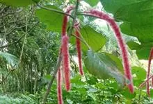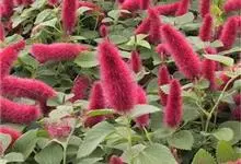 红穗铁苋菜:为大戟科、铁苋菜属植物,灌木,高0.5-3米。嫩枝被灰色短绒毛,毛逐渐脱落,小枝无毛。 花序色泽鲜艳,葇荑花序下垂,如狐狸尾状,雌花近卵形,长约0.8毫米,顶端急尖,具短毛;子房近球形,…全部>>