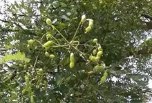 槐 Schott),豆科槐属的落叶乔木。树皮暗灰色,树冠球形,老时则呈扁球形或倒卵形。枝叶密生,羽状复叶。圆锥花序顶生,花蝶形,夏季开黄白色花,略具芳香。荚果肉质,念珠状不开裂,黄绿色,常悬垂树梢,…全部>>