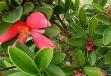 滇山茶:灌木至小乔木,有时高达15米,嫩枝无毛。叶阔椭圆形,上面干后深绿色,发亮,下面深褐色,无毛,侧脉6-7对,边缘有细锯齿。花顶生,红色,直径10厘米,无柄;苞片及萼片10-11片,花瓣红色,…全部>>