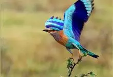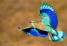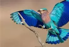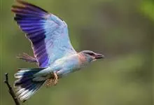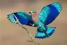 棕胸佛法僧是佛法僧科佛法僧属中型鸟类,体长32~35厘米。黑色的嘴细而下弯。头顶暗蓝色,喉、上背及部分飞羽淡紫;上胸葡萄紫色,具蓝色中央纹,下胸葡萄褐色,腹和尾下覆羽淡蓝色。腰蓝紫色,尾上覆羽辉蓝色。…全部>>